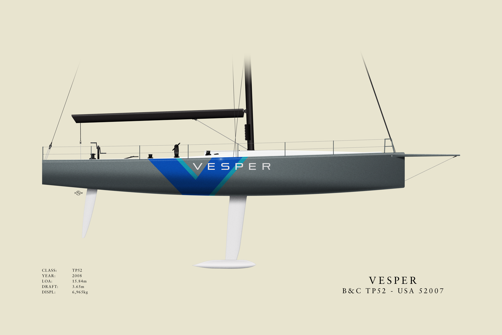 You've found a custom half hull print for friends and crew of Vesper, TP52. Order a reprint using the form on ths page or start your own custom half hull print using the button below.